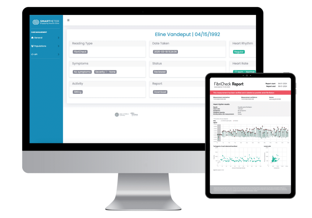 FibriCheck’s technology for heart rhythm and heart rate monitoring is now integrated with U.S. remote patient monitoring company Smart Meter. This integration enables user-friendly heart health monitoring for U.S. patients from the comfort of their own homes. Healthcare providers have access to the data via Smart Meter solutions, which provides them with valuable heart rhythm data within their own workflow. By providing healthcare providers with longitudinal data on heart rhythm and heart rate, they are supported in their clinical-decision making. This ultimately benefits both physicians and patients, as physicians have easier access to structured data and can gain immediate insights into their patients’ heart health, while patients are guided towards the right therapy early on.
