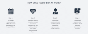 Patients with atrial fibrillation use the FibriCheck app to take regular measurements of their heart rhythm and heart rate as part of a 4-step remote monitoring programme: