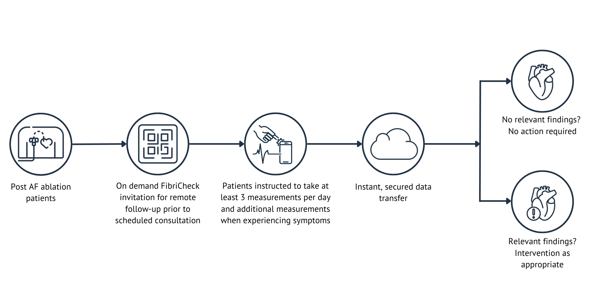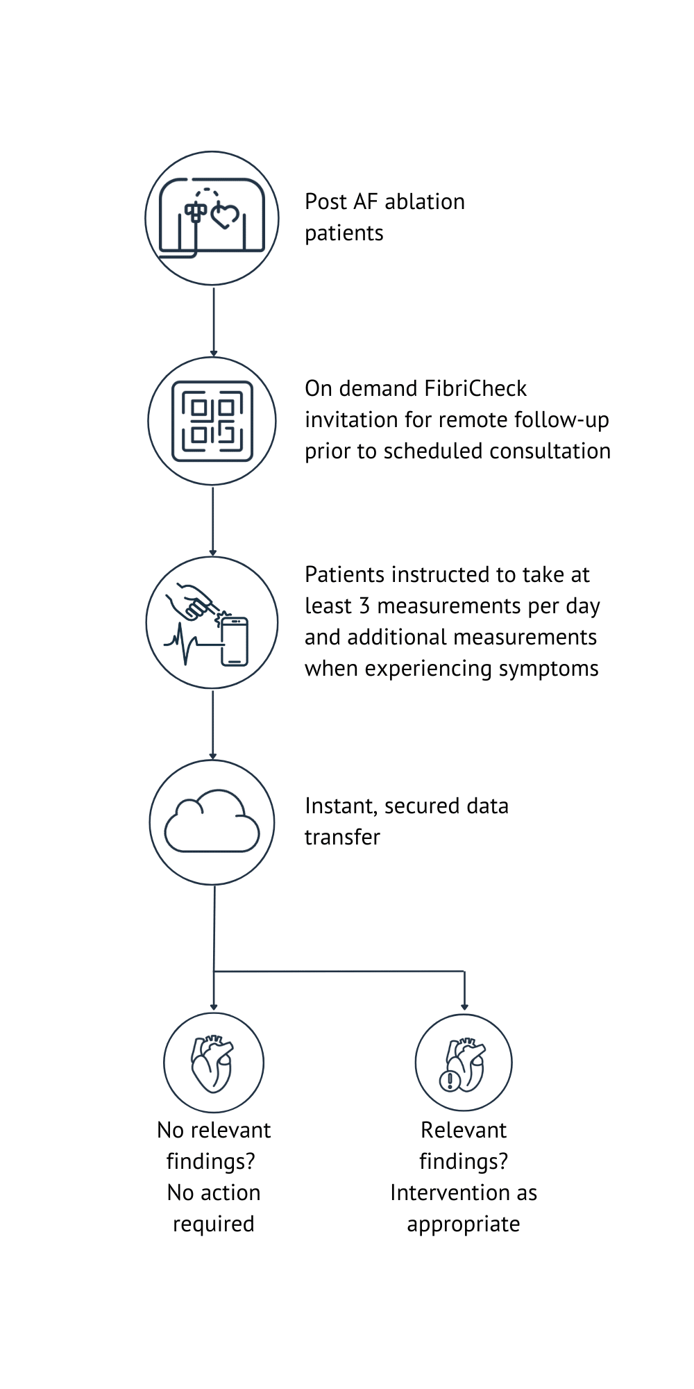 At the Essex Cardiothoracic Centre, patients were given seven-day prescriptions to FibriCheck before their 3 and 12-month appointments following an ablation procedure to treat AF. The leading arrhythmia nurse received the summary of the measurements prior to the in-person appointment. FibriCheck enabled informed decision making to manage the patients and decide on potential next steps in care.
